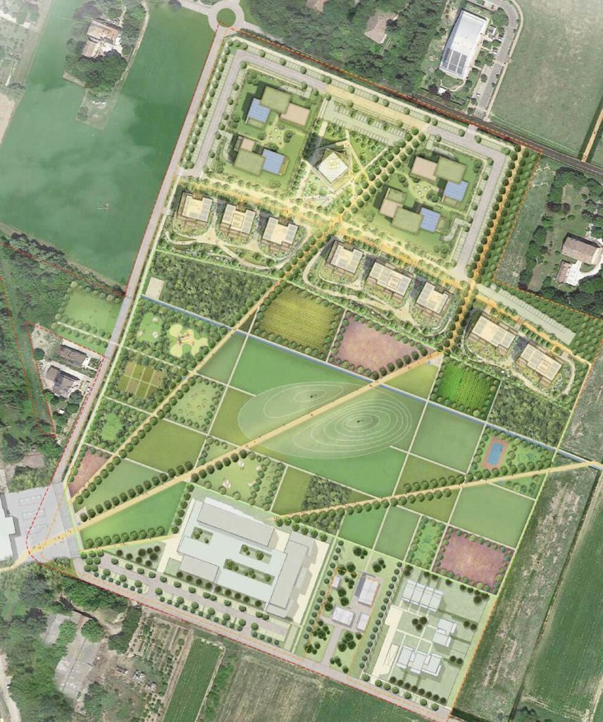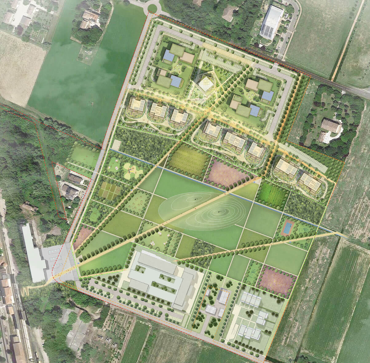 si sviluppa intorno a un grande parco pubblico, pensato come cuore verde dell’intervento.